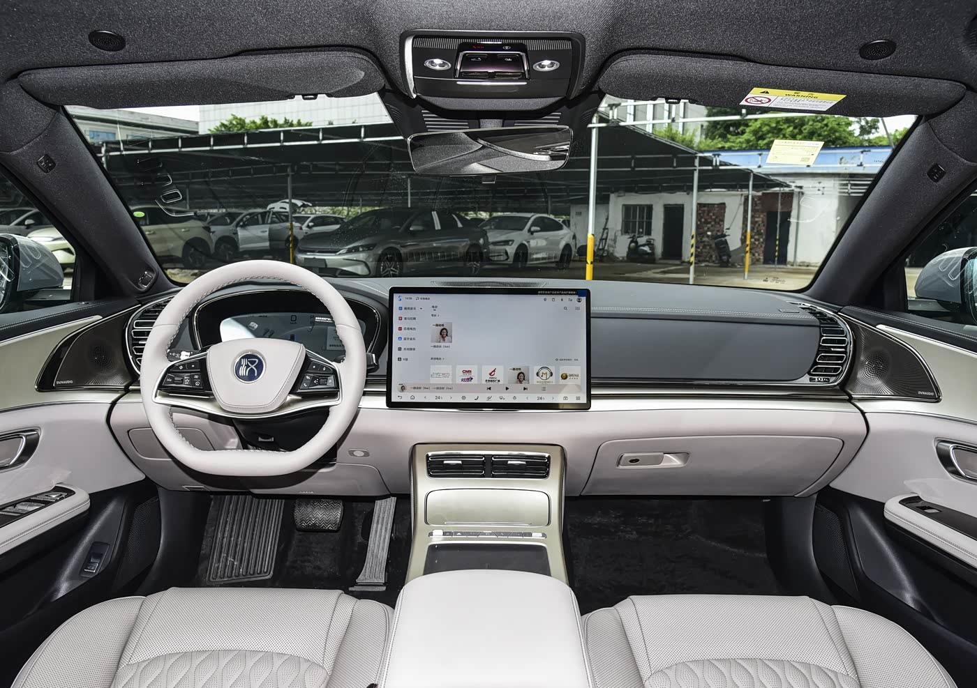 进入车内,新车内饰主打新中式豪华,大面积软质包裹、木纹 / 金属饰板搭配,质感越级。12.3 英寸全液晶仪表 + 15.6 英寸旋转中控屏 + W-HUD 抬头显示,三屏互联科技感充足。DiLink 5.0 系统流畅度、语音识别准确率大幅提升,操作逻辑简单易懂。配置层面诚意十足,丹拿音响、多层隔音玻璃、多色氛围灯、热泵空调全系高配可见;前排座椅加热 / 通风 / 按摩、后排座椅加热,舒适性对标豪华品牌。空间表现方面,前排 180cm 乘客头部一拳余量;后排腿部两拳以上,头部空间充裕,地板纯平设计提升中间乘客舒适性。后备箱容积规整,家用行李、商务公文包、婴儿车均可轻松容纳,兼顾家用与商务。