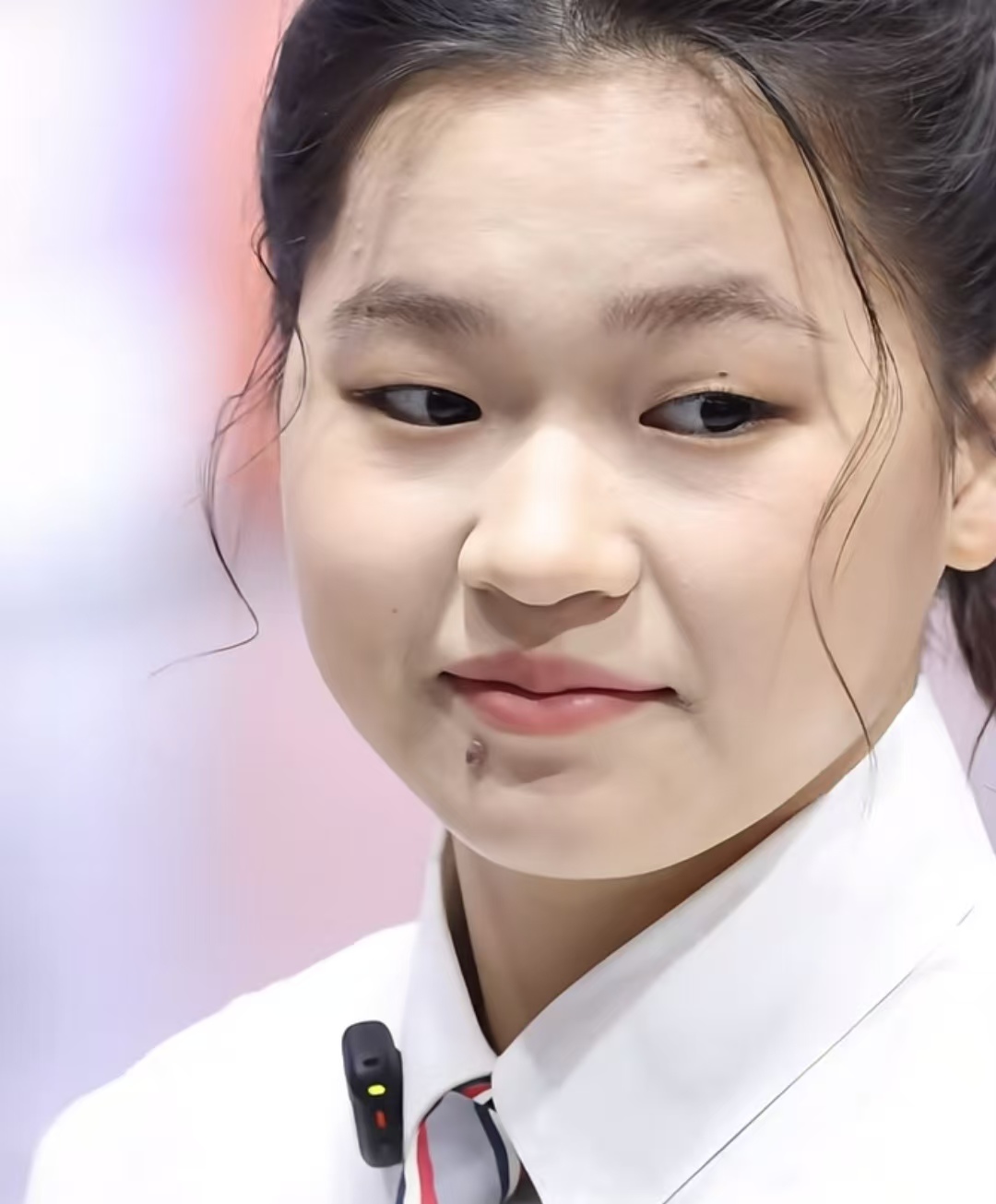 这次全红婵的穿搭也很亮眼,一改赛场上运动服的样子,走的是学院风路线。脸上化着淡淡的妆,几乎看不出来,气质变得干净又温柔。白衬衫配灰色百褶裙,系着小巧的韩式领结,头上梳着俏皮的拳击辫,脚下踩一双马丁靴,把学院风和运动感结合得刚刚好,19岁少女的青春活力一下子就出来了,圆圆的脸蛋看着特别有福气,让人觉得特别亲切。