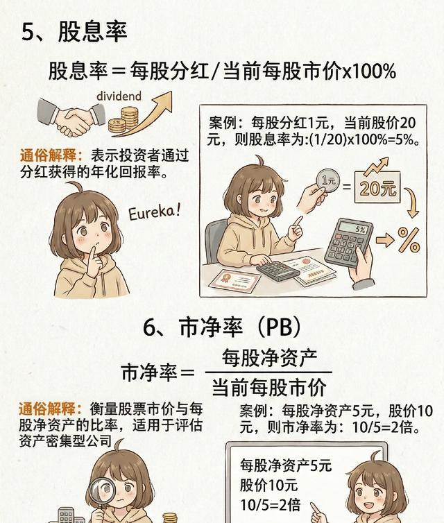 股息率适合稳健型投资者,公式:股息率 =(每股分红 ÷ 当前每股市价)×100%。它反映公司的分红回报率,比如某个股每股分红1元,股价20元,股息率就是5%,比很多银行理财都高。数据显示,连续5年股息率超3%的中国上市公司,大多是现金流稳定的国企或行业龙头,比如长江电力、工商银行,这类公司没什么爆涨的可能,但能给你稳定的现金流,适合长期躺着赚钱。